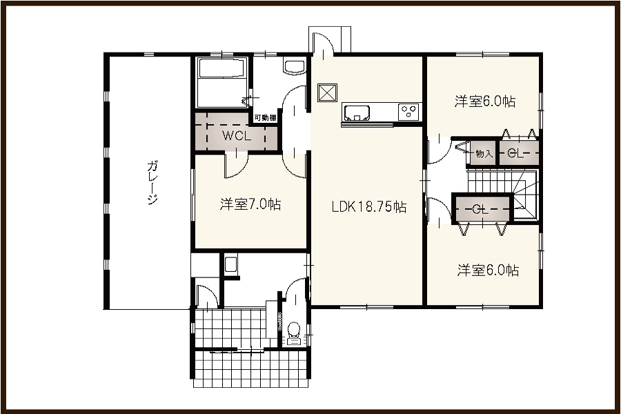 ガレージに隣接している洋室には