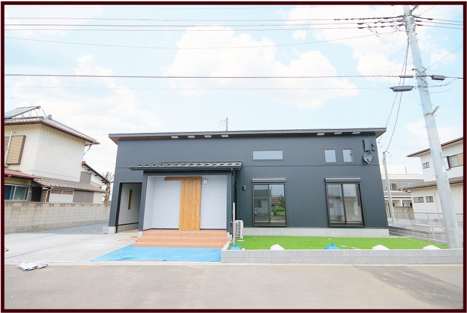 黒を基調とした外観で室内の建具は